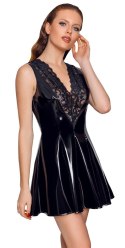 Black Level - Seksowna Vinylowa Sukienka Z Dodatkiem Koronki S Black Level
