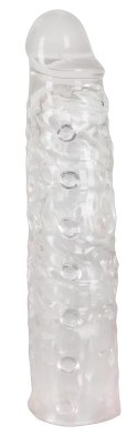Osłonka penisa studded i żyłki - bardzo długa (może być skrócona indywidualnie). Wypełnij żołądź, aby wydłużyć penisa. Przezroczysta. długość zewnętrzna ok. 22 cm, Ø 3,8-5 cm. Długość wewnętrzna 18 cm, Ø 3,7 cm. Materiał: TPE.