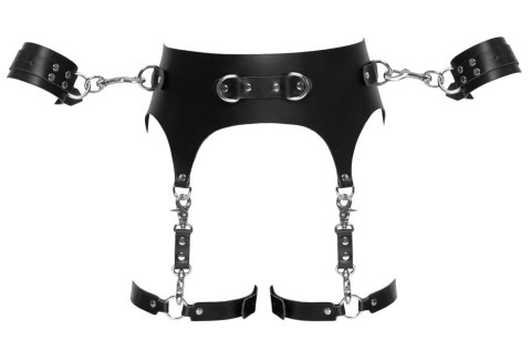 • ZADO - Skórzany Pas Z Mankietami Na Nadgarstki I Uda Czarny S/M ZADO